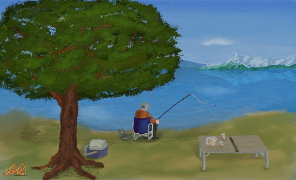 Thank you, Dice Grimorium at https://www.patreon.com/dicegrimorium, for the map on the table!Cloudy Day at the Lake“Everyone knows that the Riders keep watch over everything.” says the dark oracle with a clear voice, as he approaches from the shadows surrounding him, slowly, “…Everyone except you.” The thief’s heart beats even more wildly as the last pieces of light narrows around him, the city’s light pole hardly able to compete with the darkness circling in.“Day’s pretty nice, isn’t it Kelli?” the man asks, as the horse follows him through this field.Got critique by Art-of=Akrosh for this piece and got to take my medicine! Amazing the difference, hm? XDThe first appearance of the fisherman; who is just relaxing by the lake as he waits for a fish to be interested, with drinks and snacks nearby. The tribe princess and the oracle walking down a path nearby the lake; while a fisherman enjoys some lazy time near the water.