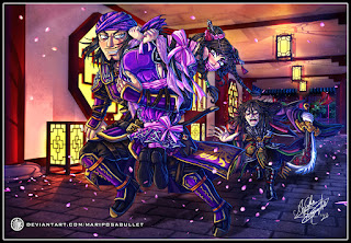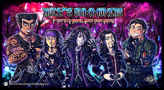 The first thing that I must say is that MariposaBullet is amazing with her painting. That background fits perfectly with how these characters look and all the black leather manages to look just that much different for each character! And super respect for how she drew and painted that tattoo on the character’s arm.