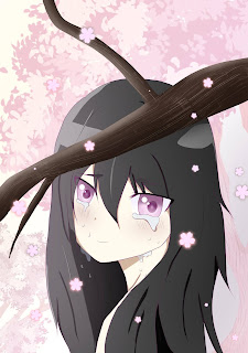 A smile despite the tears falling from her eyes. Definitely makes me think that the character is pretty strong. And aren’t those blossoms in the background just so adorable? They frame her so very well.