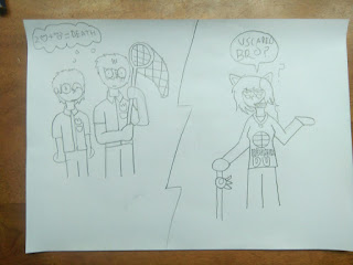This is just fun to get to see. The two people on the left were told that they needed to catch a cat. Whoever would have expected it to be a cat person with a sword?