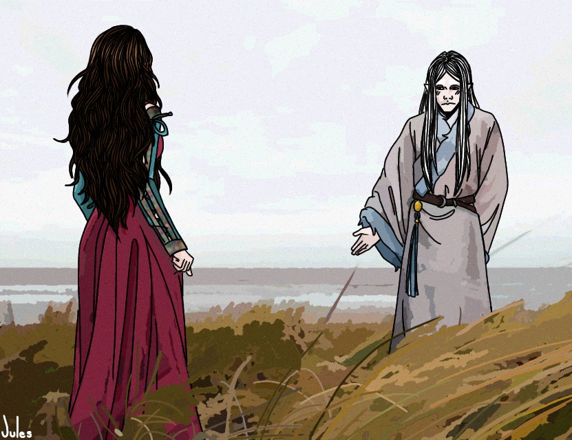 Looking at the dA piece, this seems to be a confession of love! The characters chose the best place to talk about this; in the dry grass not that terribly far from the sea.