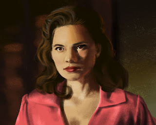 The pink blouse is a color that Agent Carter tends to wear if I recall but I love how it helps set the character as standing before the background. And can we just look at how well dfang21 carved that nose in the painting! Excellent work!