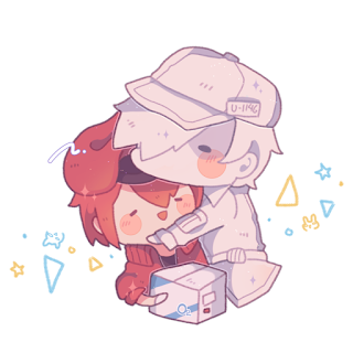 “Cells at Work” is a show that’s watching the cells in a body work to that body’s good. Interesting! But enough about that, aren’t the characters that fallsml drew for this picture just so cute? It’s so unlikely that a red blood cell and a white blood cell would ever touch! But this piece just makes it work, maybe the white blood cell is showing its willingness to protect the red blood cell just by wrapping his arms around her?