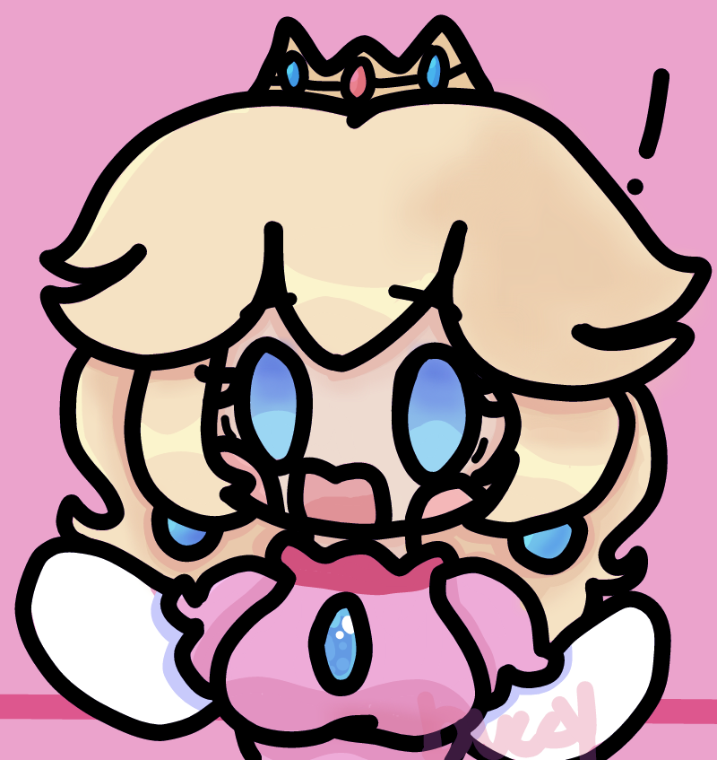 This is the look that Bowser gets to see almost every single time during the kidnapping scenes of the games. XD It’s great to see her earrings and her brooch in this image since they break up some of the pink and blonde. They were placed perfectly in this piece and match so well with her eyes. I also like how Buccy drew the sleeves against those white gloves, it also breaks up the pink in such a nice way!