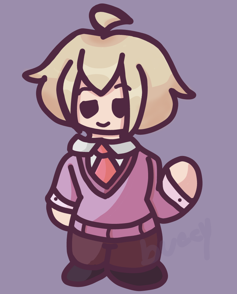 As for Kevin dream, this almost looks like the character is wearing a uniform of sorts. Perhaps he’s a student in a high school? And I really enjoy how Buccy drew in the hair. It looks like I could reach forward and run my fingers through it! Very cute work here. ^^