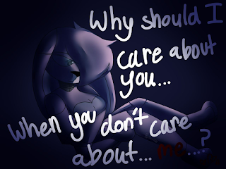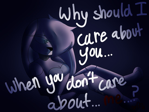This is such a sad piece, it brings to mind when I was stuck with those questions repeating for years. Bonbon has done a great job in showing the darkness and loneliness in this state of mind. And what a very dull bit of light on the character. She must feel terrible.