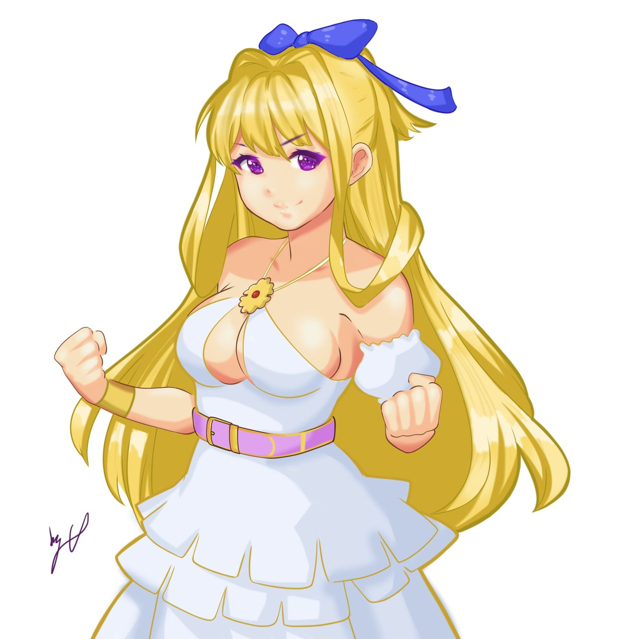 This character is drawn quite beautifully; which fits the ‘godness’ tag that lawkapay gave the piece. That blue bow fits perfectly in that wash of blond hair and I really do bet that her dress moves great with each step! I personally have to go back up to those eyes every time I look the piece over; aren’t they such a beautiful purple-pink shade?