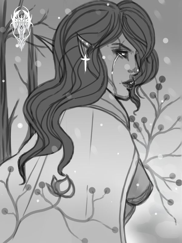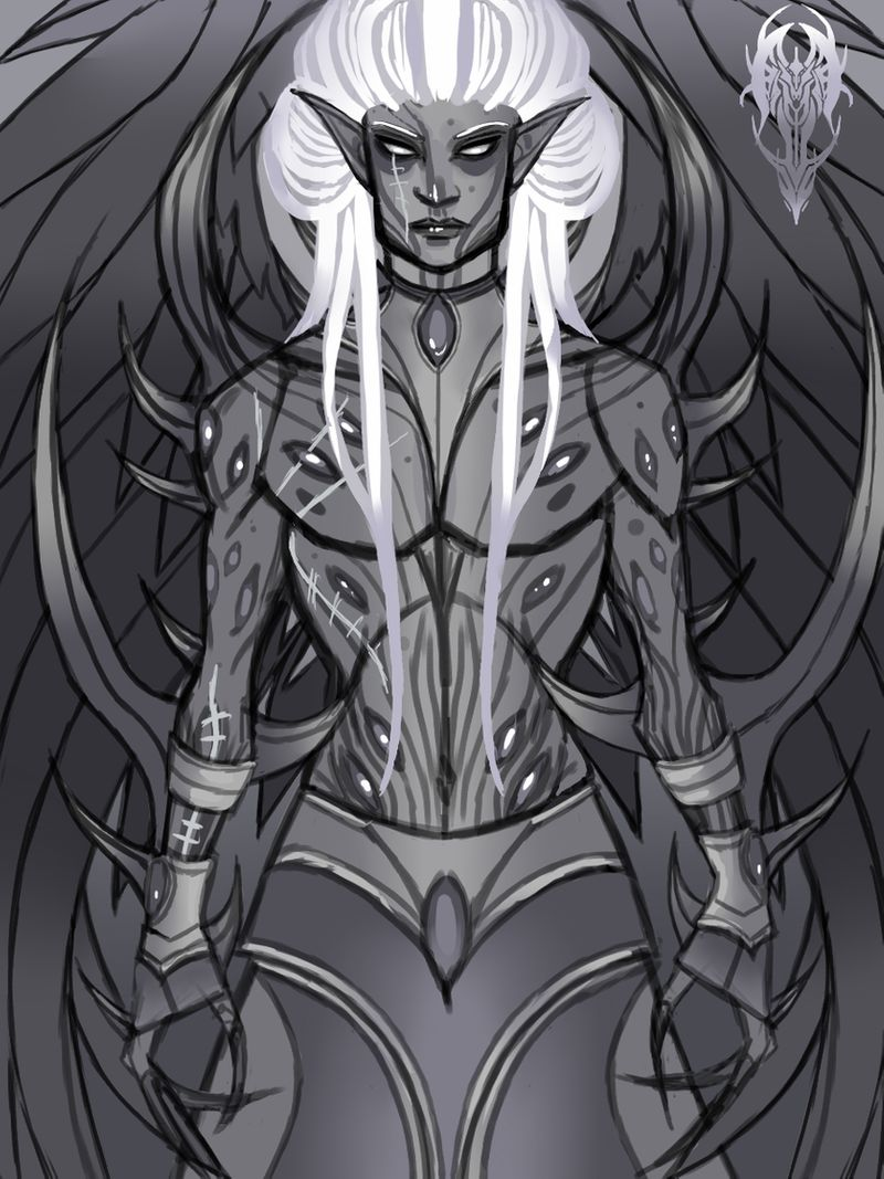 This is another very well done gray scale piece, don’t you think? I personally enjoy how well Xehiros drew the muscles and battle wounds on this character and just look at the holes in his skin. Want evidence of an “old” king? Right there! And may I just drool about how she drew up those wings around him?