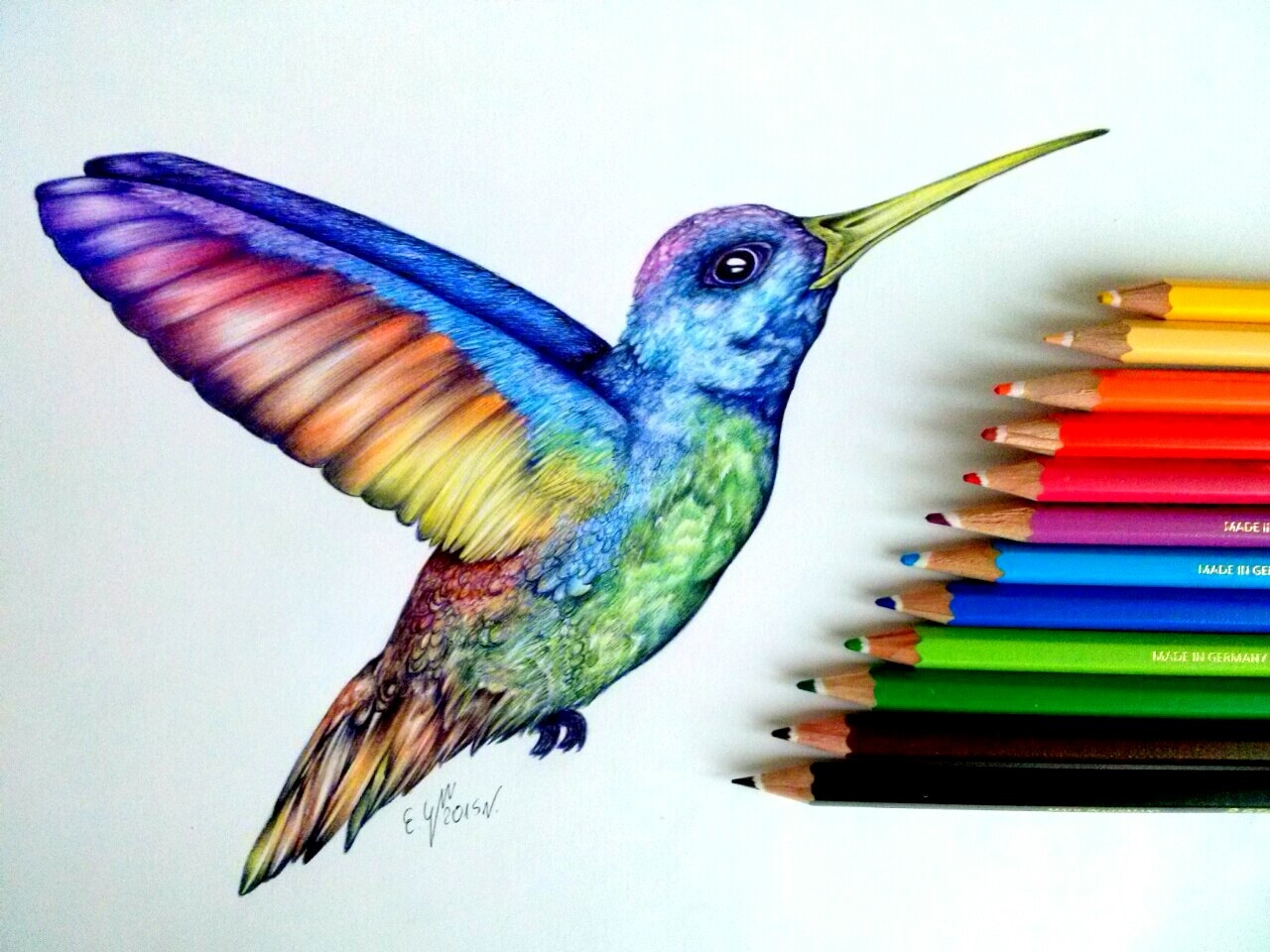 Here are some of the tools that EmilyArtPoland uses for her colors! And oh. my. gosh. don’t they look so amazing having put down the colors of this hummingbird? Great eye for the different feathers for different sections, too–the feathers used for flying are drawn and colored so well. And then to echo from the bird’s head all the way to its tail? Super work!