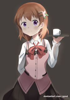 This character seems to be from a ‘slice of life’ anime called GnochiUsa and didn’t GPAD do an amazing job with the pose and color? I personally really enjoy how that flower is in her hair and her eyes are adorable. I wonder how long that bow around her neck took? But the tray and cup seem to finish the character perfectly. Excellent work!