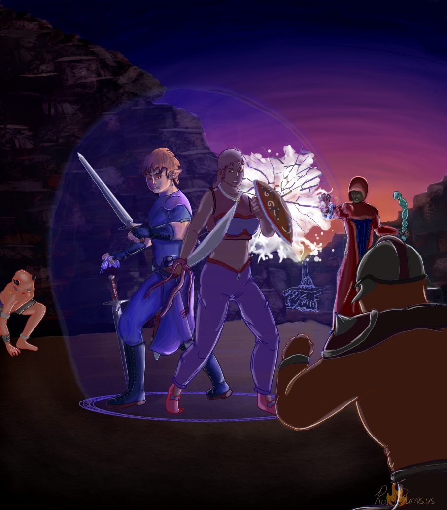 Either way, there’s finally some good news on the picture I’ve been working on! Finally got the basic style idea on Valeon and now, it shouldn’t take that long to get the rest of them painted. There’s no reason that I shouldn’t be able to paint this way 4 more times, right? (Didn’t know I could paint like this at all, considering. So I’m more thrilled than I ought to be.)