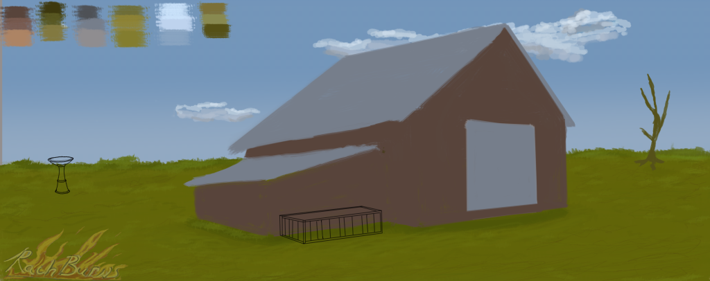 Still just blocking things in, but I’m a ton happier with how that tree came out! Still considering the planter and the birdbath is finally starting to come out…can’t figure out what I’d put in the planter. She would like flowers in it and her perfect yard is one covered in flowers. XD