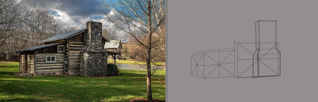 It’s being generally frustrating to a minor degree (enough to make me whine about it). But don’t all of my projects do this? XD Here is where I am attempting to sketch this log cabin: