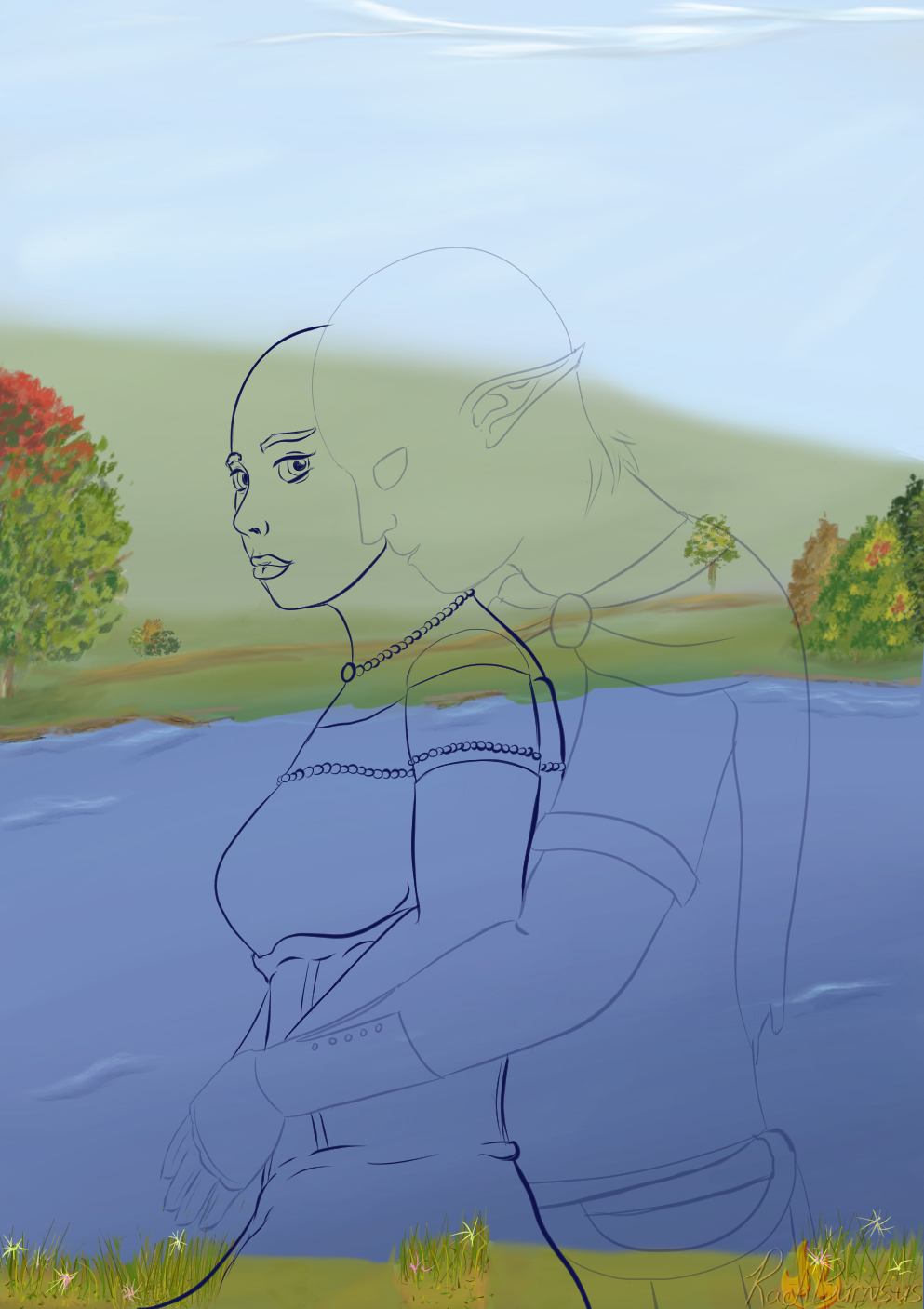 In other news, I’m pouting that the little tree behind Valeon is going to disappear. Darn pity that the drawing went this way.