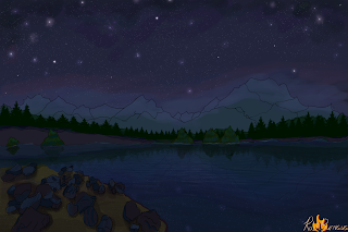 The most amazing thing has happened! The .clip file allowed me to merge all of the reflection layers without messing them up. I’m going to sing about that lucky happy accident until something else happens. Also, I have plenty to thank my tutor about–he suggested I create some silhouettes of the trees I meant to put in the background? It looks amazing!