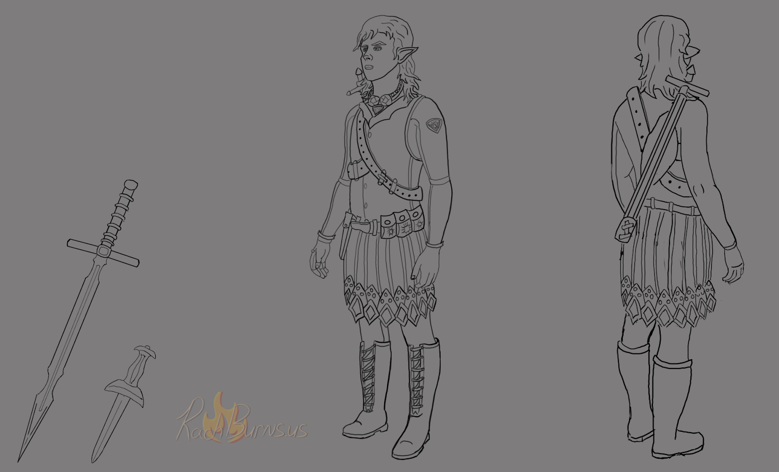 This allows for his armor and vest to be a low-grade amount of rock for his own protection. …and yes, this was decided since I realized that he’s going to have one of his hands empty while using these blades.